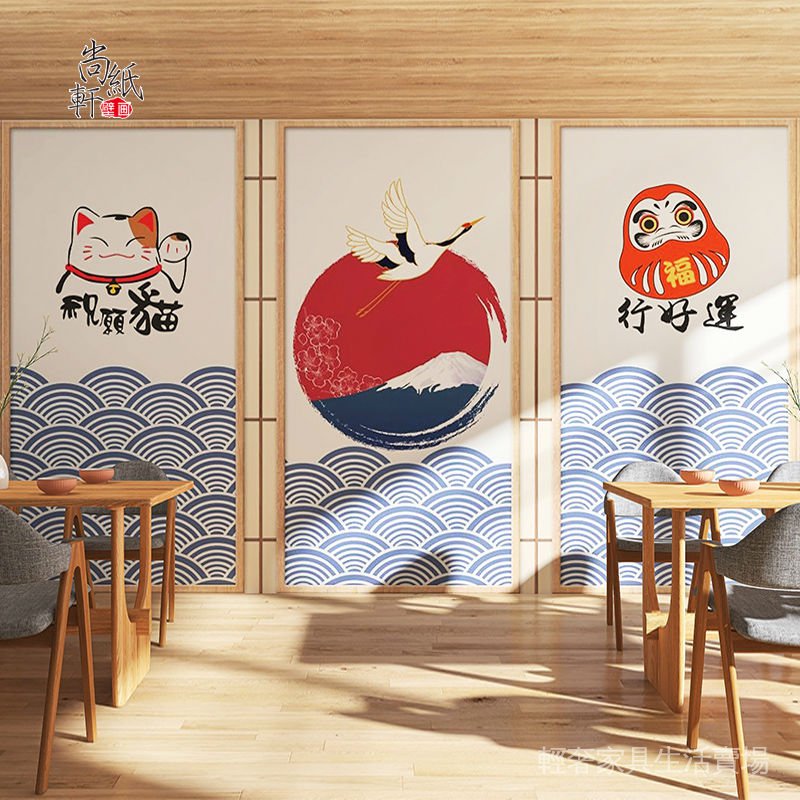 茶道竹簾 日式招財貓墻紙和風手繪仙鶴般若居酒屋壁畫浮世繪海浪壽司店壁紙 蝦皮購物
